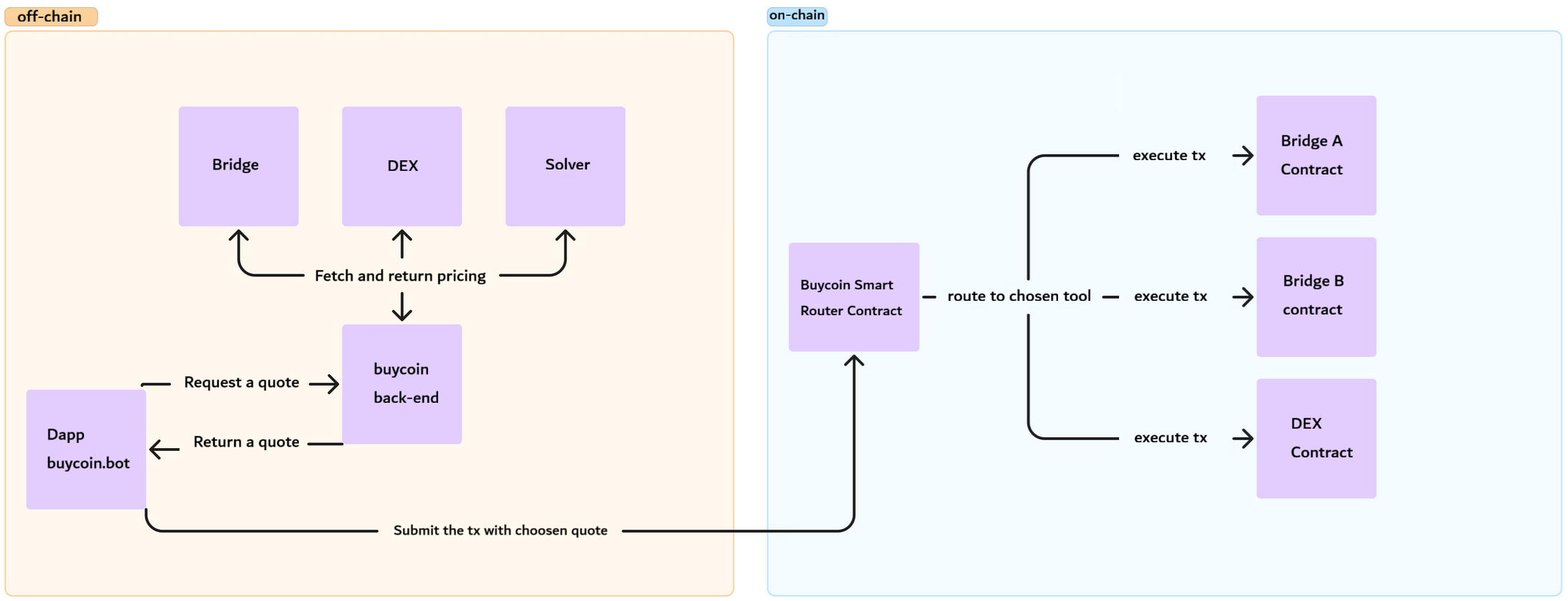 Buycoin is a multi-chain liquidity aggregation platform that connects decentralized applications (dApps) with various liquidity sources, including bridges, decentralized exchanges (DEXs), and solvers.